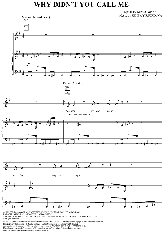 Digital Sheet Music for Why Didn't You Call Me by Macy Gray, Jeremy Ruzumna scored for Piano/Vocal/Chords; id:283024