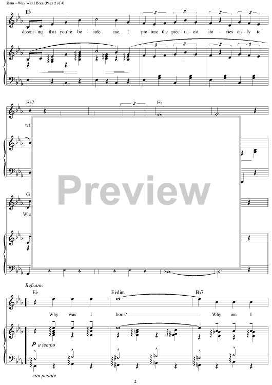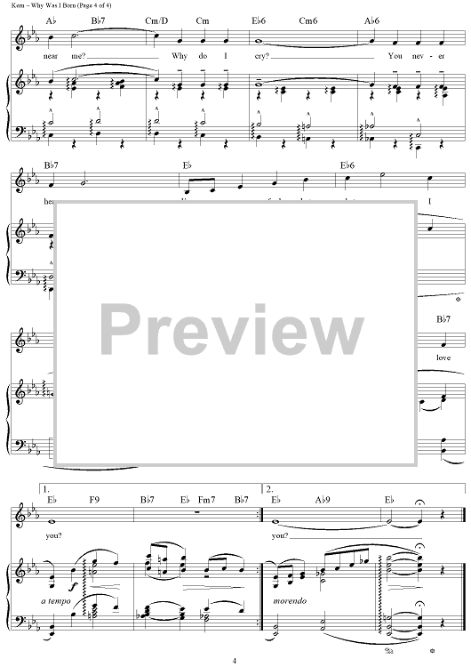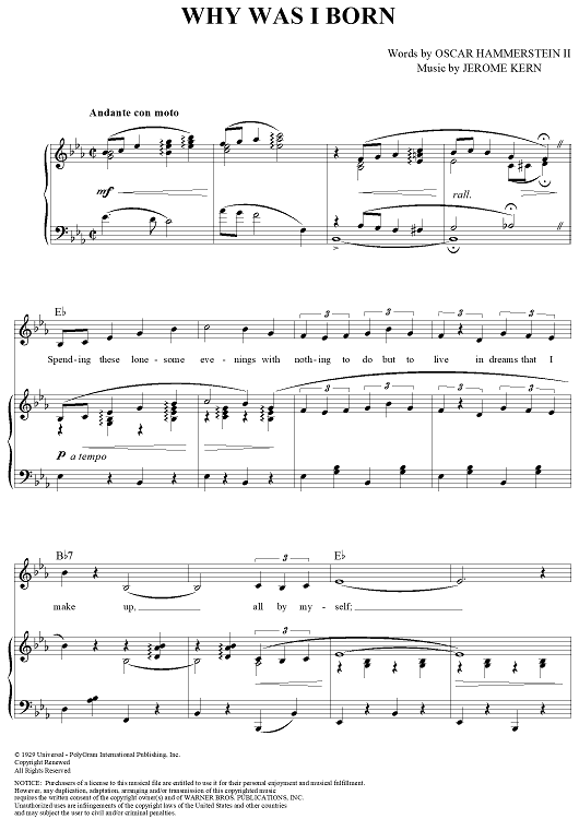 Digital Sheet Music for Why Was I Born by Jerome Kern, Oscar Hammerstein II scored for Piano/Vocal/Chords; id:292558