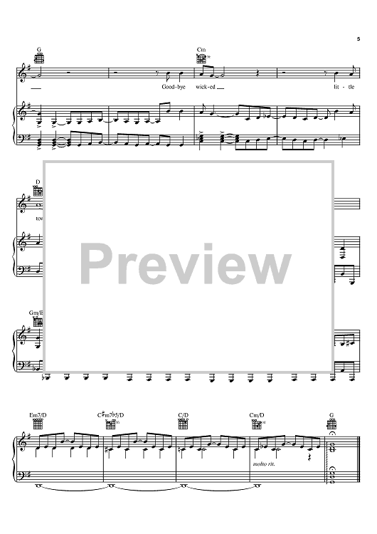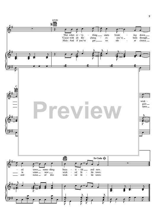Digital Sheet Music for Wicked Little Town (Reprise) by Stephen Trask scored for Piano/Vocal/Chords; id:374565