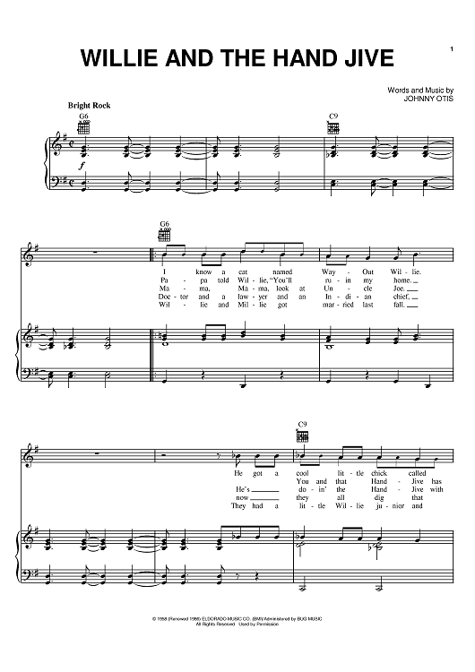Digital Sheet Music for Willie And The Hand Jive by Eric Clapton, Johnny Otis scored for Piano/Vocal/Chords; id:384134