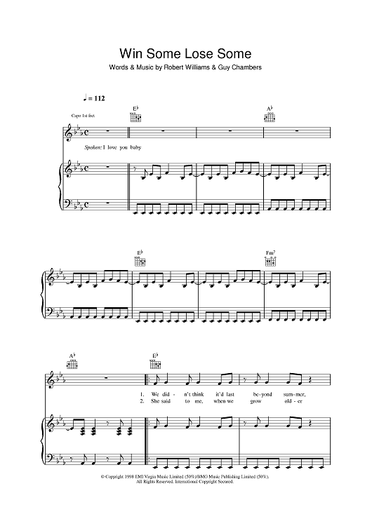 Digital Sheet Music for Win Some Lose Some by Robbie Williams, Guy Chambers scored for Piano/Vocal/Chords; id:401256