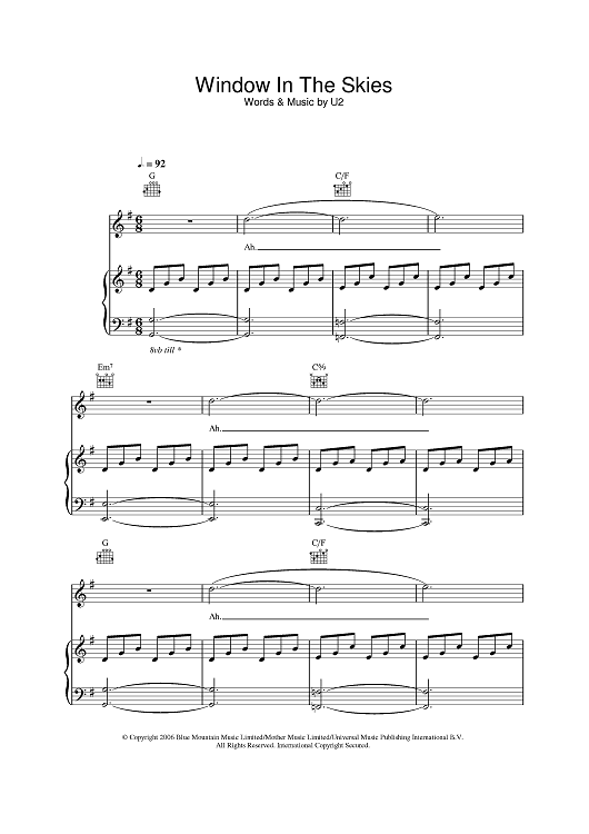 Digital Sheet Music for Window In The Skies by U2 scored for Piano/Vocal/Chords; id:397105
