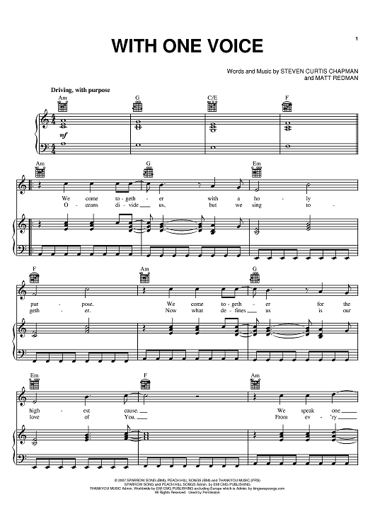Digital Sheet Music for With One Voice by Steven Curtis Chapman, Matt Redman scored for Piano/Vocal/Chords; id:401986