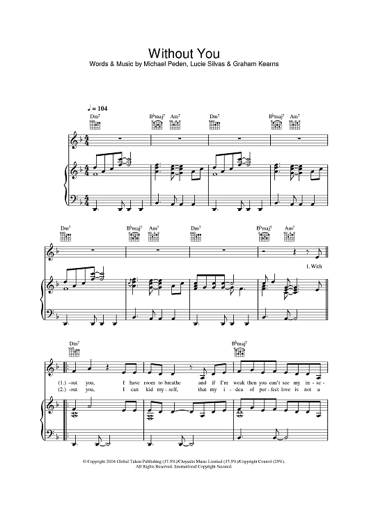 Digital Sheet Music for Without You by Graham Kearns, Michael Peden, Lucie Silvas scored for Piano/Vocal/Chords; id:381675