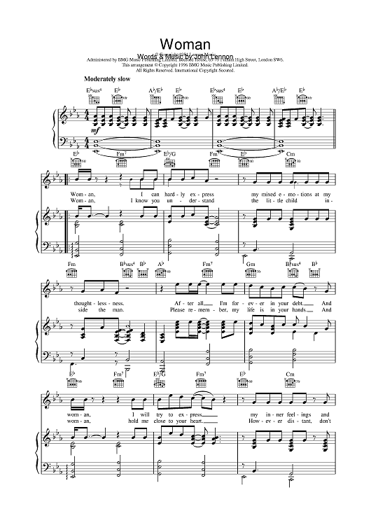 Digital Sheet Music for Woman by John Lennon scored for Piano/Vocal/Chords; id:377941