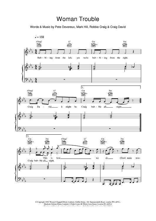 Digital Sheet Music for Woman Trouble by Craig David, Mark Hill, Pete Devereux, Robbie Craig scored for Piano/Vocal/Chords; id:377432