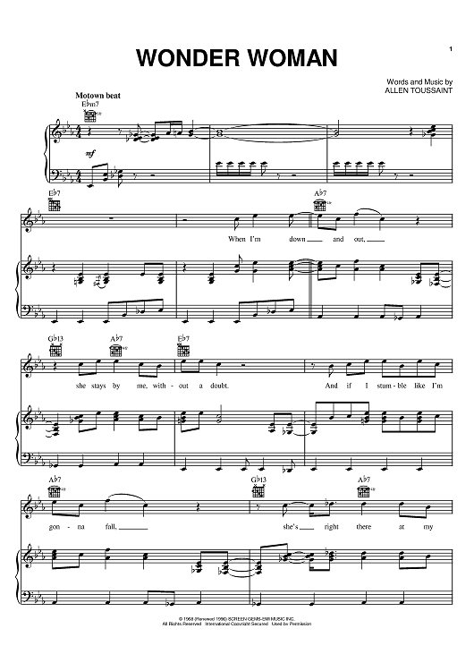 Digital Sheet Music for Wonder Woman by Elvis Costello, Allen Toussaint scored for Piano/Vocal/Chords; id:394732