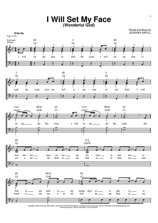 Digital Sheet Music for Wonderful God I Will Set My Face by Godfrey Birtill scored for Piano/Vocal/Chords; id:396915