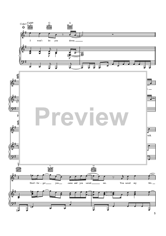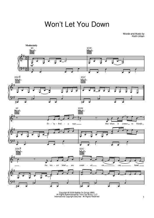 Digital Sheet Music for Won't Let You Down by Keith Urban scored for Piano/Vocal/Chords; id:402464