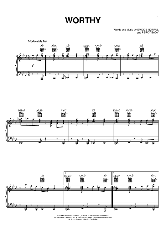 Digital Sheet Music for Worthy by Percy Bady, Smokie Norful scored for Piano/Vocal/Chords; id:381645