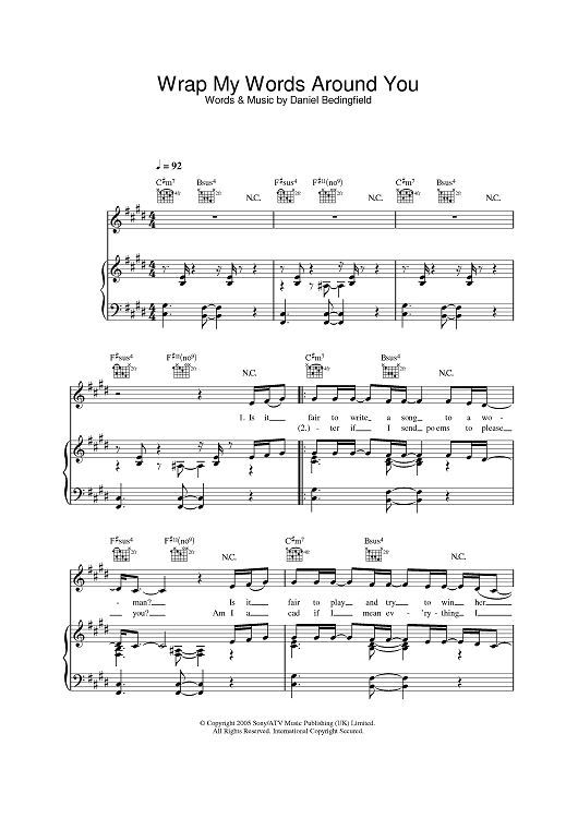 Digital Sheet Music for Wrap My Words Around You by Daniel Bedingfield scored for Piano/Vocal/Chords; id:384033