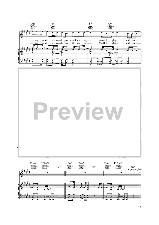 "Wrap My Words Around You" Sheet Music by Daniel Bedingfield