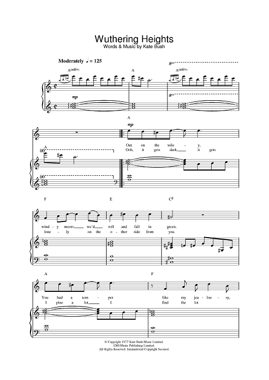 Digital Sheet Music for Wuthering Heights by Hayley Dee Westenra scored for Piano/Vocal/Chords; id:377562