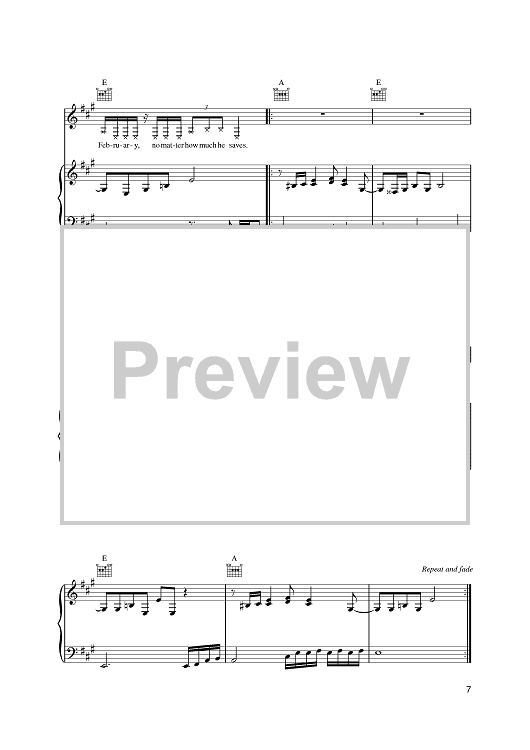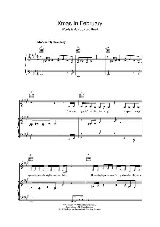 Digital Sheet Music for Xmas In February by Lou Reed scored for Piano/Vocal/Chords; id:402222