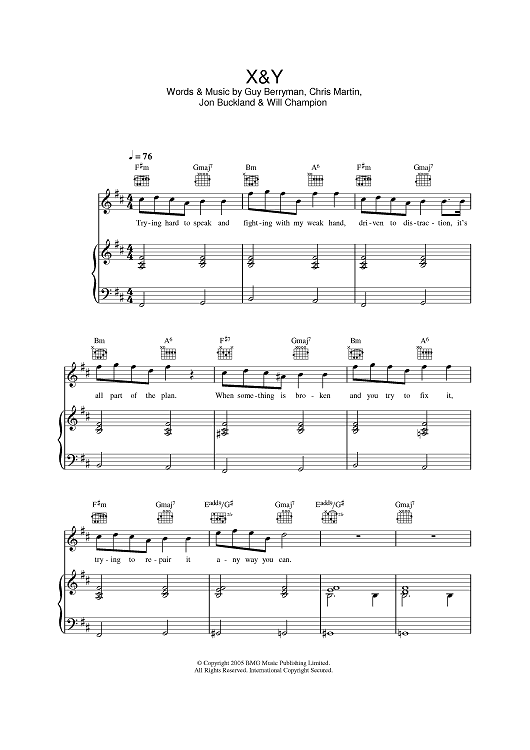 Digital Sheet Music for X&Y by Chris Martin, Coldplay, Jonny Buckland, Guy Berryman scored for Piano/Vocal/Chords; id:384550