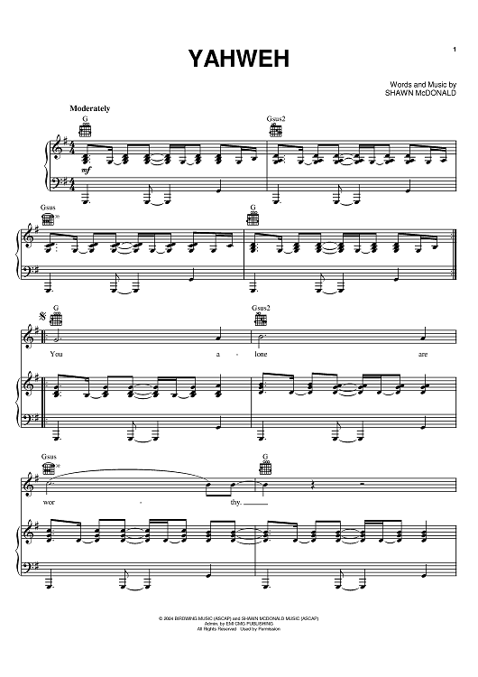 Digital Sheet Music for Yahweh by Shawn McDonald scored for Piano/Vocal/Chords; id:381904