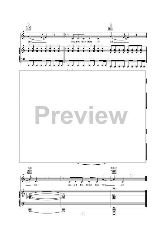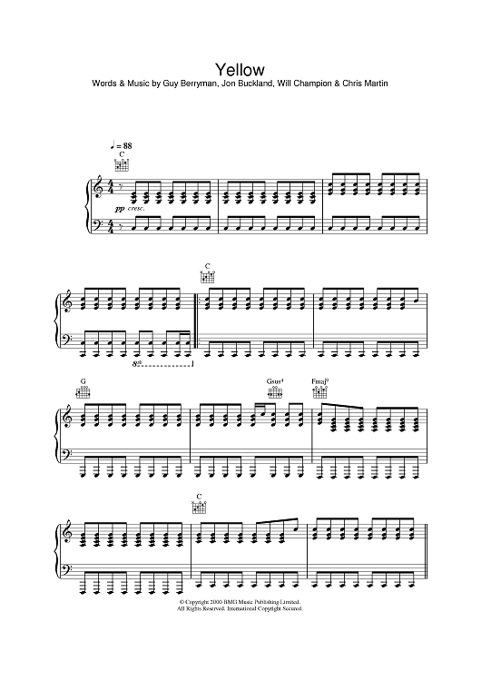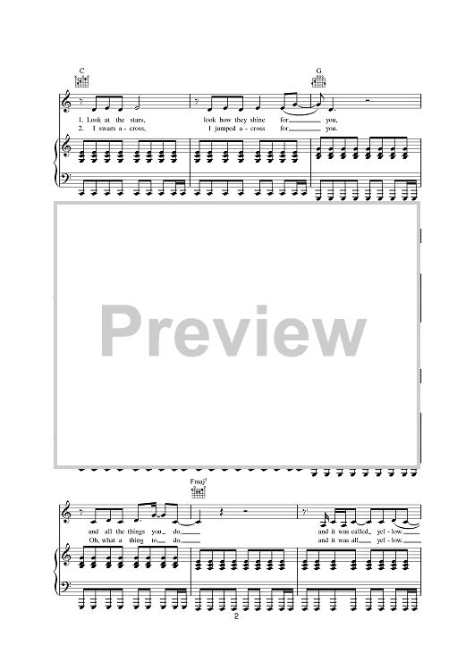 Digital Sheet Music for Yellow by Alex Parks scored for Piano/Vocal/Chords; id:377201