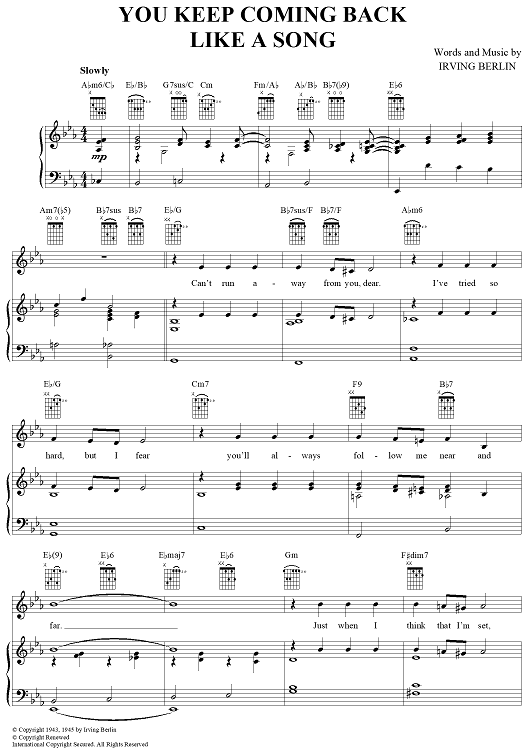 Digital Sheet Music for You Keep Coming Back Like a Song by Irving Berlin, Dinah Shore, Jo Stafford scored for Piano/Vocal/Chords; id:403154