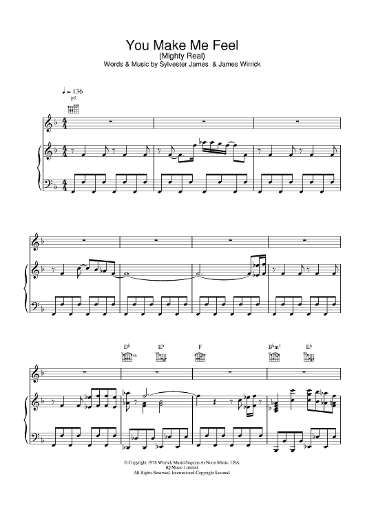 Digital Sheet Music for You Make Me Feel (Mighty Real) by Jimmy Somerville, Sylvester scored for Piano/Vocal/Chords; id:375638