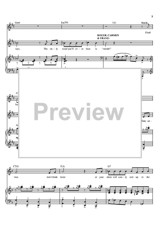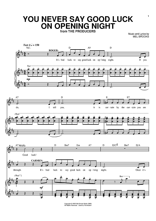 Digital Sheet Music for You Never Say Good Luck On Opening Night by Mel Brooks scored for Piano/Vocal/Chords; id:381617