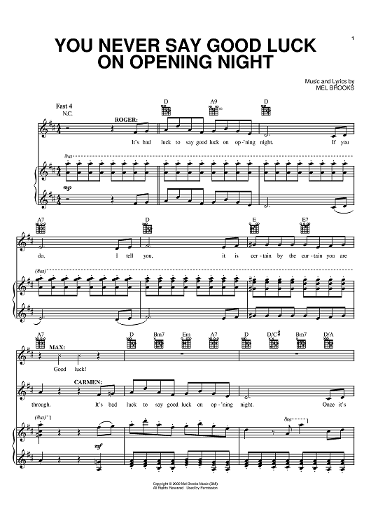 Digital Sheet Music for You Never Say Good Luck On Opening Night by Mel Brooks scored for Piano/Vocal/Chords; id:388542