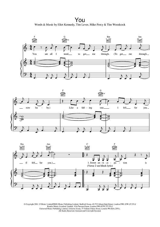 Digital Sheet Music for You by Mike Percy, Tim Lever, Eliot Kennedy, S Club 7 scored for Piano/Vocal/Chords; id:380176