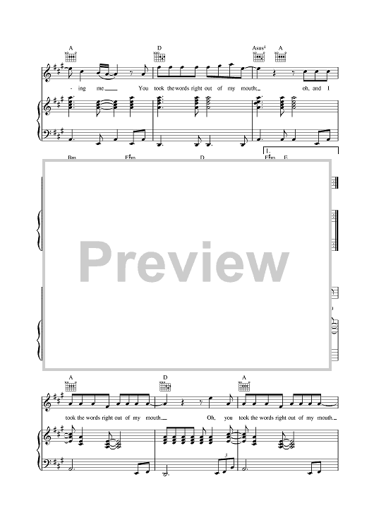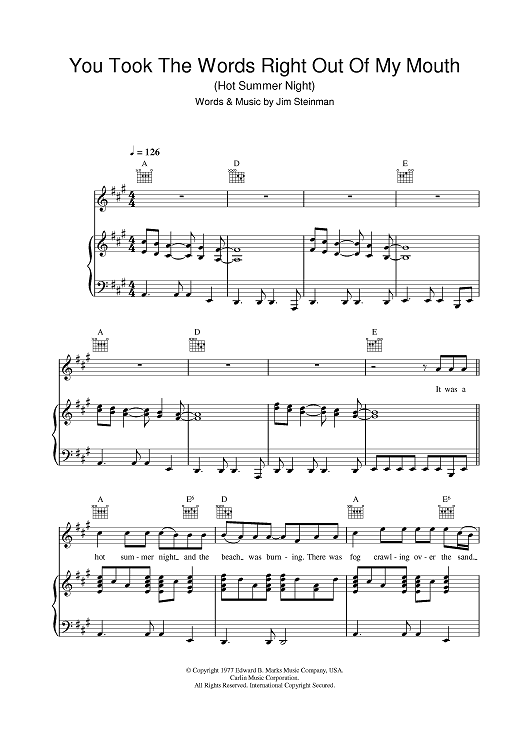 Digital Sheet Music for You Took The Words Right Out Of My Mouth by Meatloaf scored for Piano/Vocal/Chords; id:378769
