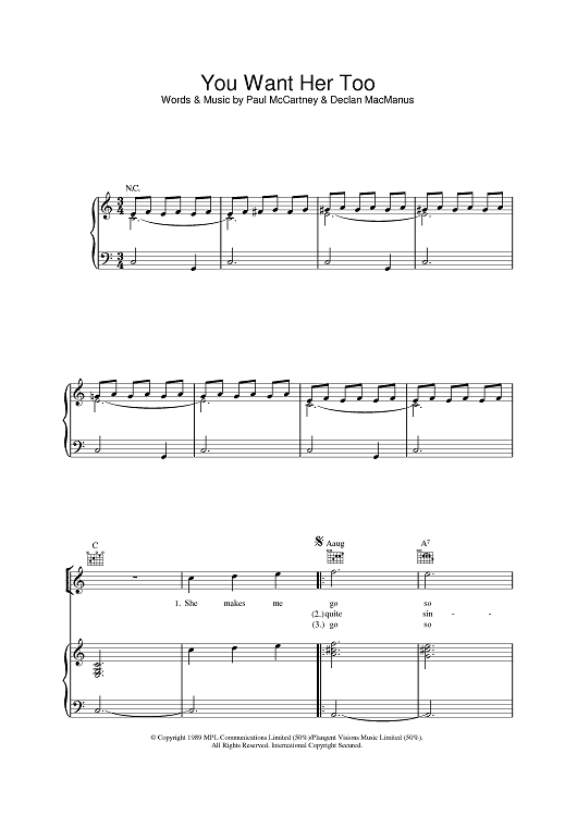 Digital Sheet Music for You Want Her Too by Paul McCartney, Elvis Costello scored for Piano/Vocal/Chords; id:389158