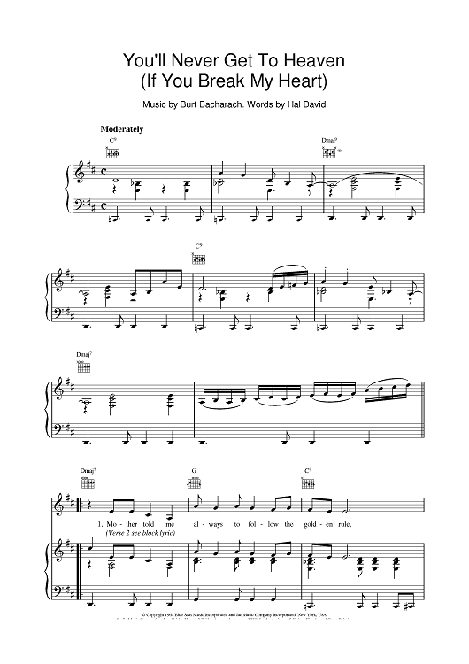 Digital Sheet Music for You'll Never Get To Heaven by Hal David, Burt Bacharach scored for Piano/Vocal/Chords; id:380235