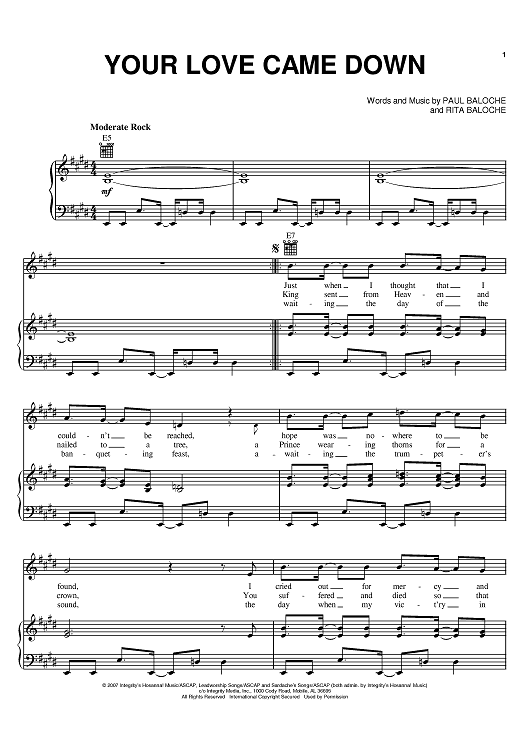 Digital Sheet Music for Your Love Came Down by Rita Baloche, Paul Baloche scored for Piano/Vocal/Chords; id:402019