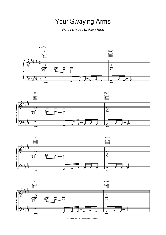 Digital Sheet Music for Your Swaying Arms by Deacon Blue scored for Piano/Vocal/Chords; id:375927