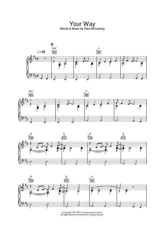Digital Sheet Music for Your Way by Paul McCartney scored for Piano/Vocal/Chords; id:389249