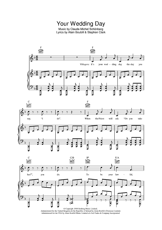 "Your Wedding Day" Sheet Music by Claude-Michel Schonberg