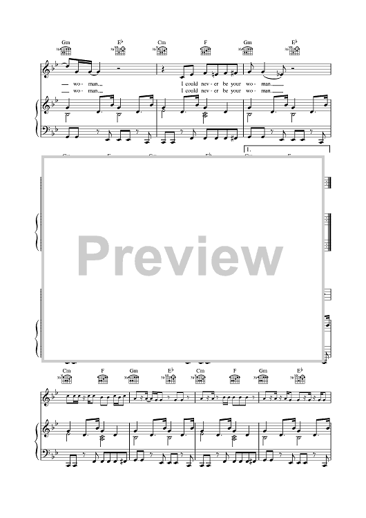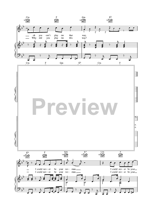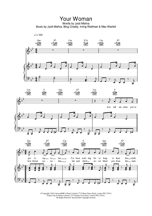 Digital Sheet Music for Your Woman by White Town scored for Piano/Vocal/Chords; id:377054
