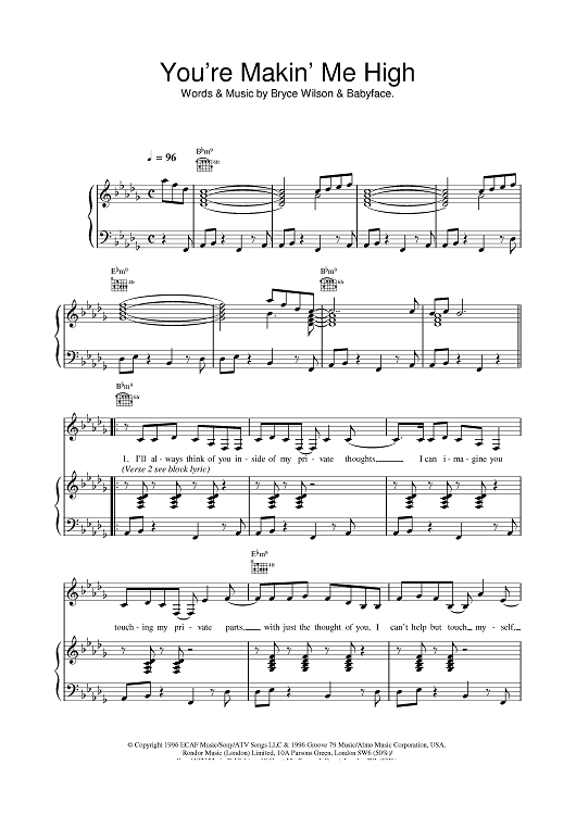 Digital Sheet Music for You're Makin' Me High by Toni Braxton, Babyface, Bryce Wilson scored for Piano/Vocal/Chords; id:379785