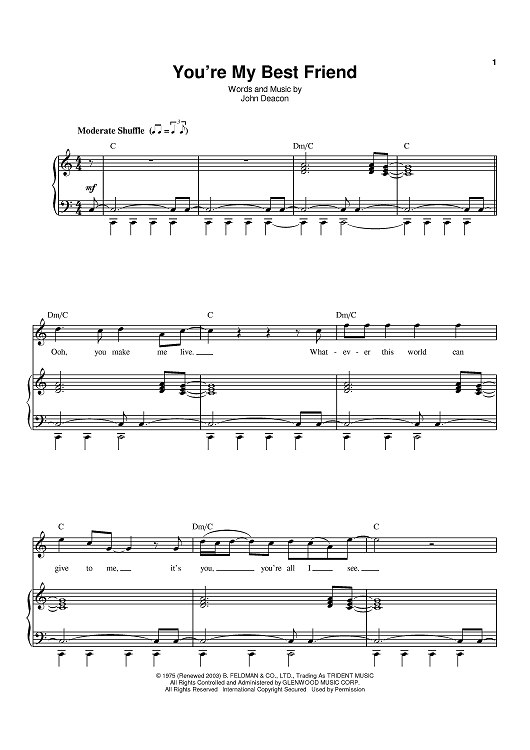 Digital Sheet Music for You're My Best Friend by Queen, John Deacon scored for Piano/Vocal/Chords; id:398582