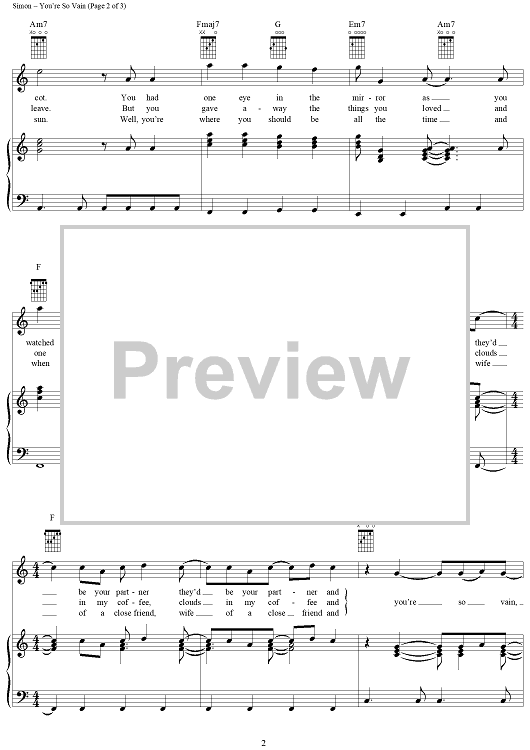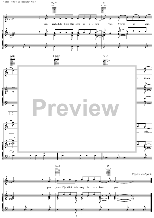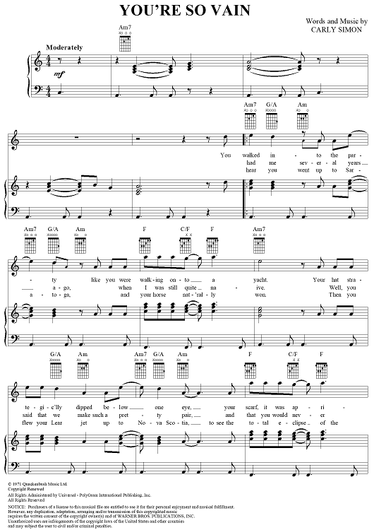 Digital Sheet Music for You're So Vain by Carly Simon scored for Piano/Vocal/Chords; id:286562