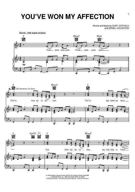 Digital Sheet Music for You've Won My Affection by Israel Houghton, Curt Coffield scored for Piano/Vocal/Chords; id:401494