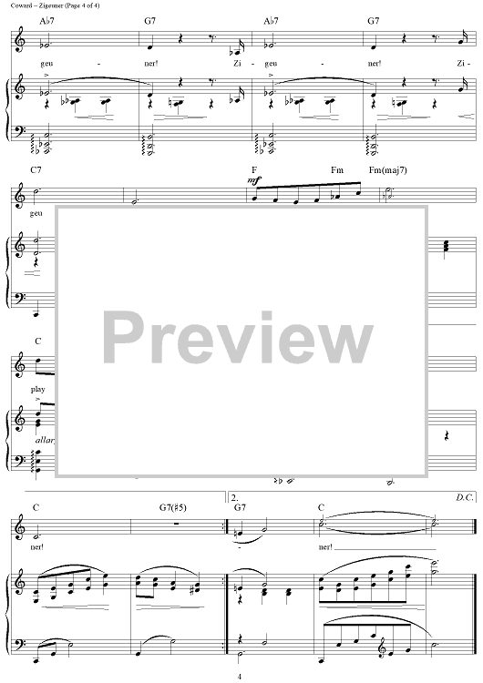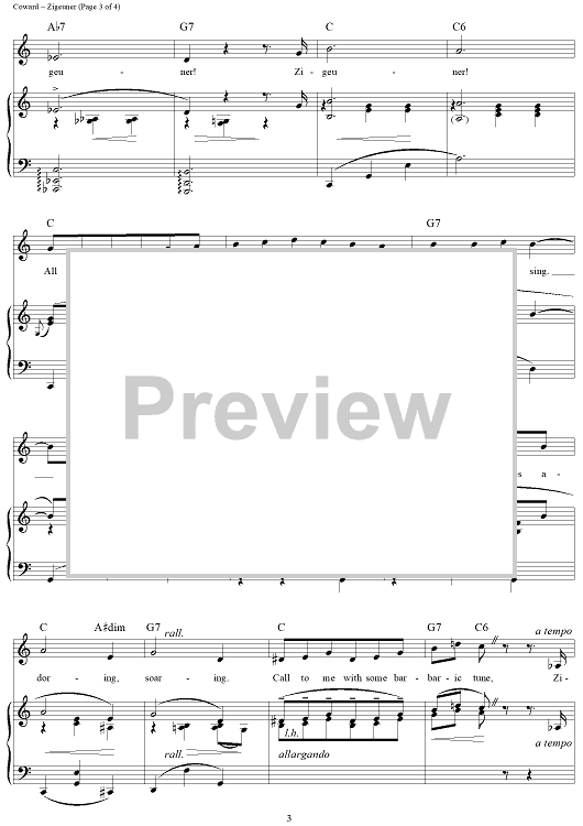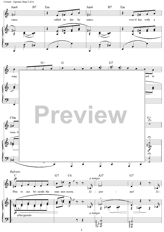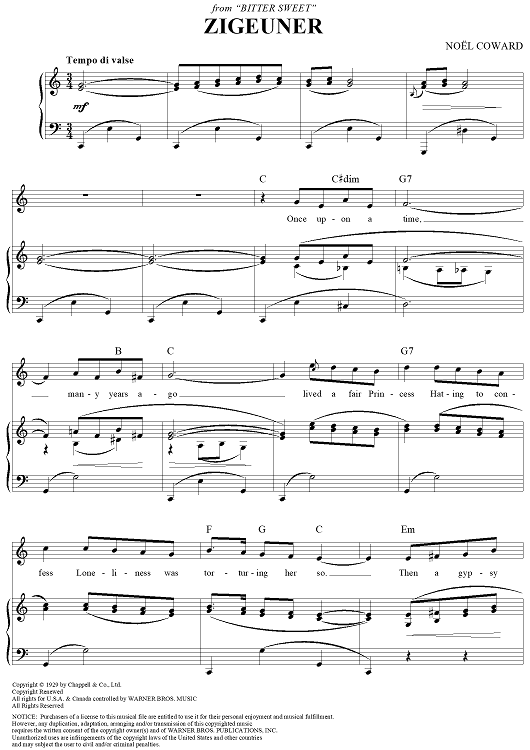 Digital Sheet Music for Zigeuner by Noel Coward scored for Piano/Vocal/Chords; id:356898