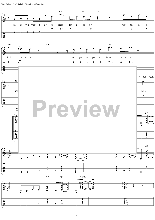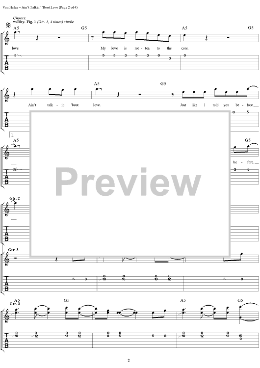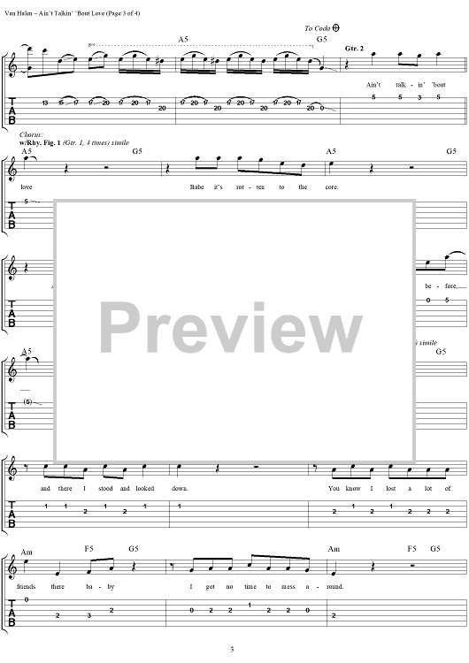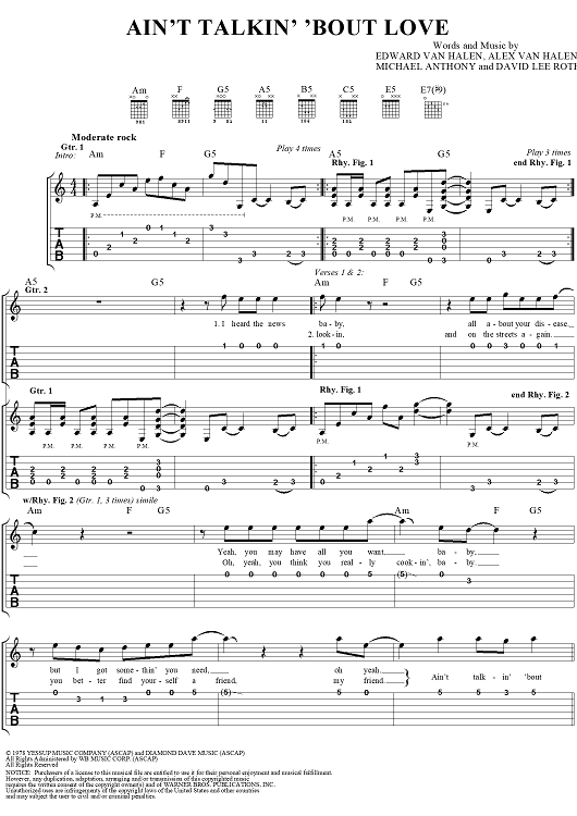 "Ain't Talkin' 'Bout Love" Sheet Music by Van Halen