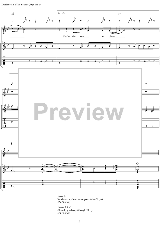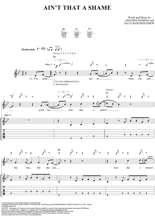 "Ain't That a Shame" Sheet Music by Fats Domino