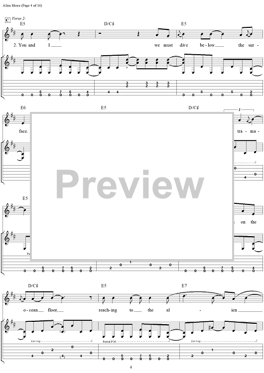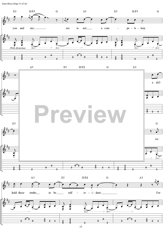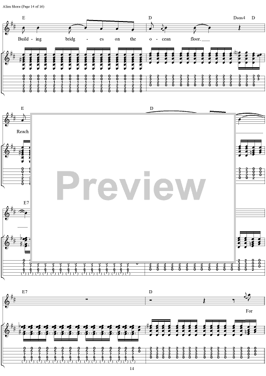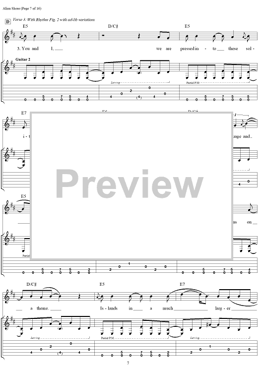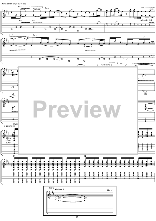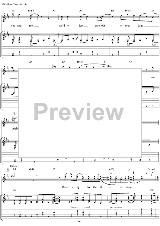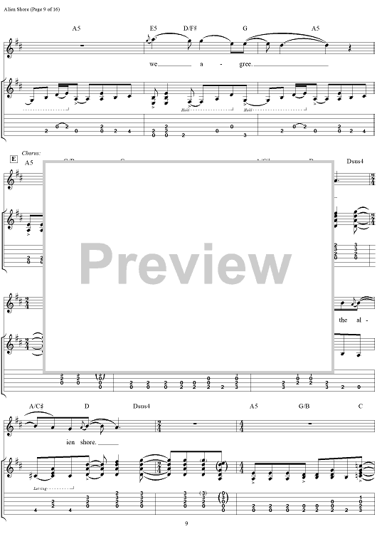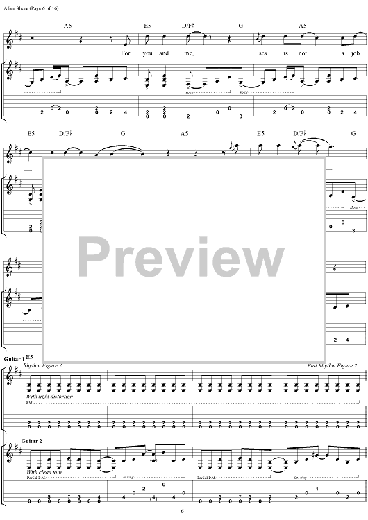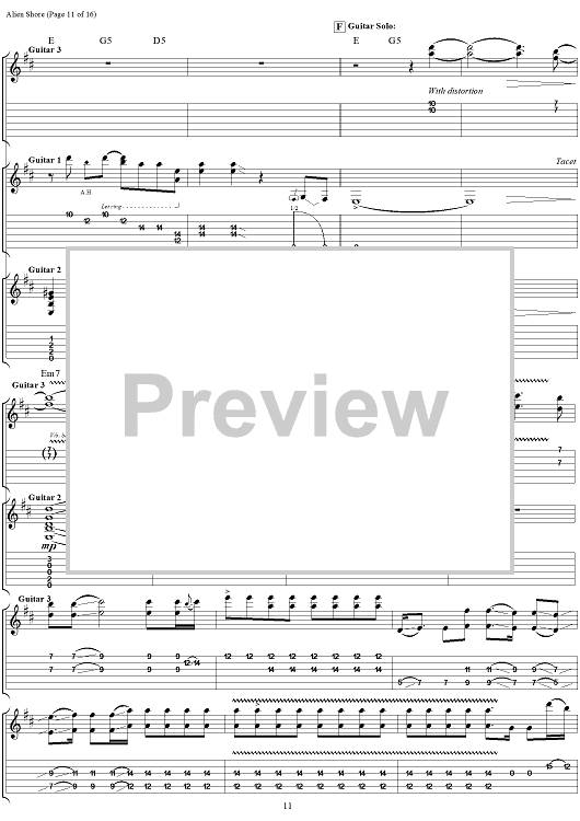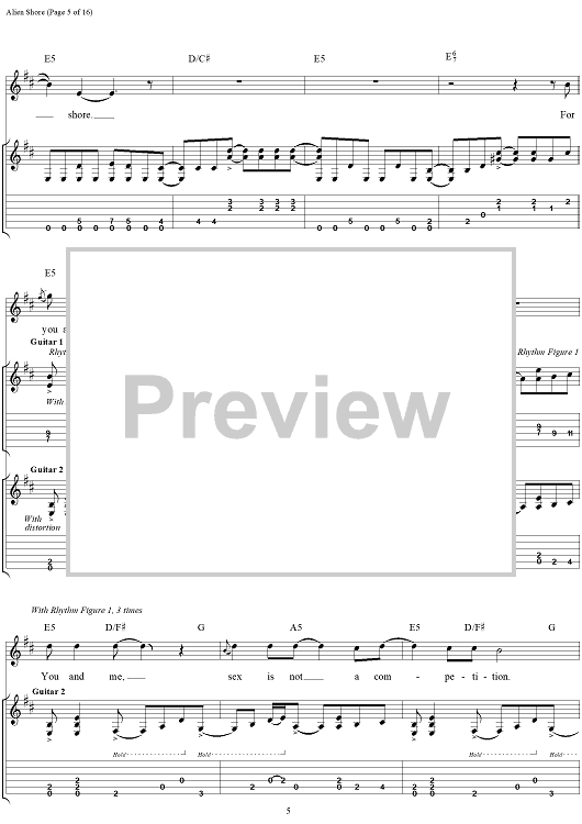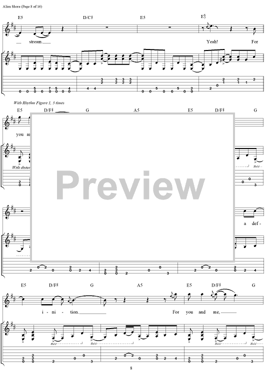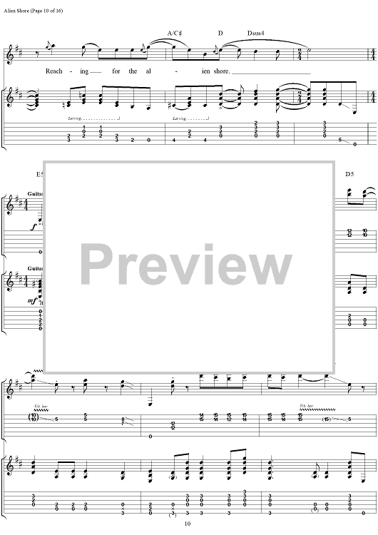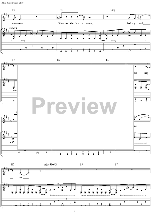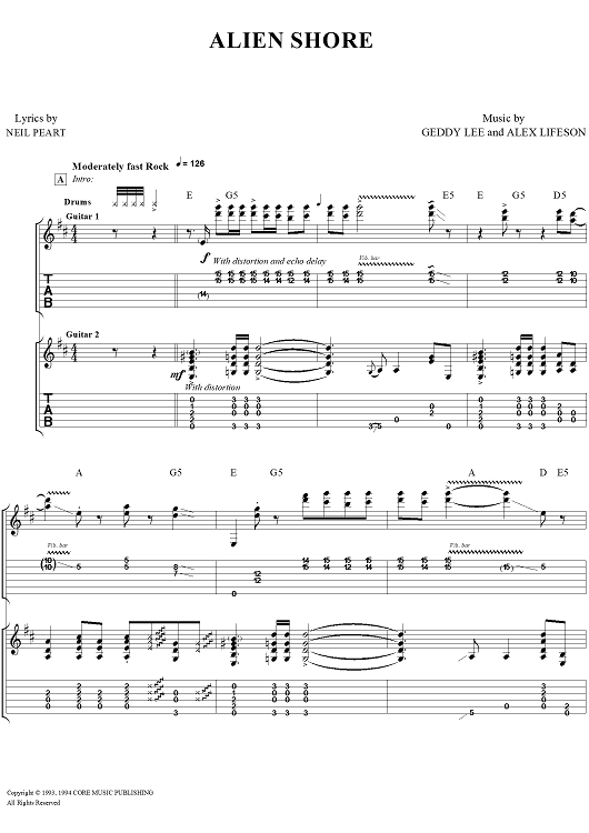 Digital Sheet Music for Alien Shore by Rush, Geddy Lee, Alex Lifeson, Neil Peart scored for Guitar Tab/Vocal; id:111344