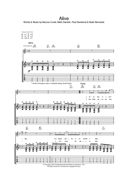 Digital Sheet Music for Alive by Marcos Curiel, Noah Bernardo, Mark Daniels, Payable On Death, Paul Sandoval scored for Guitar Tab; id:384191