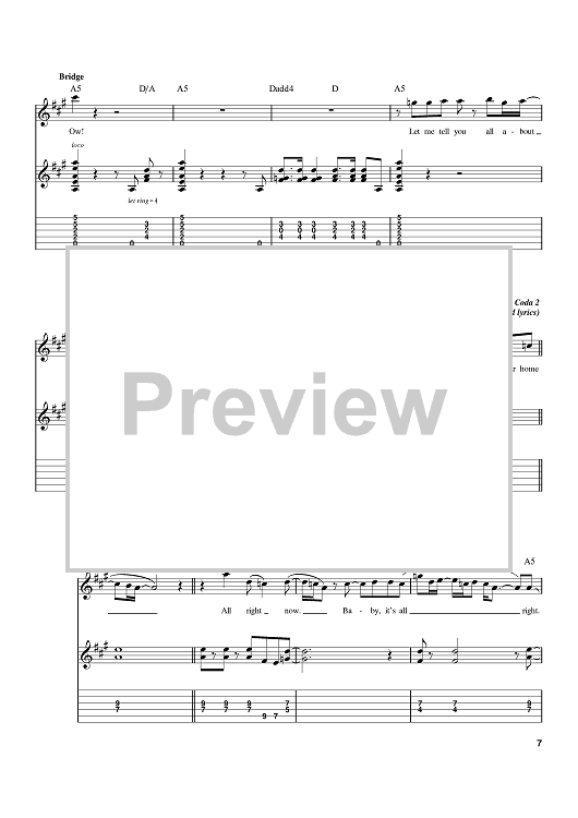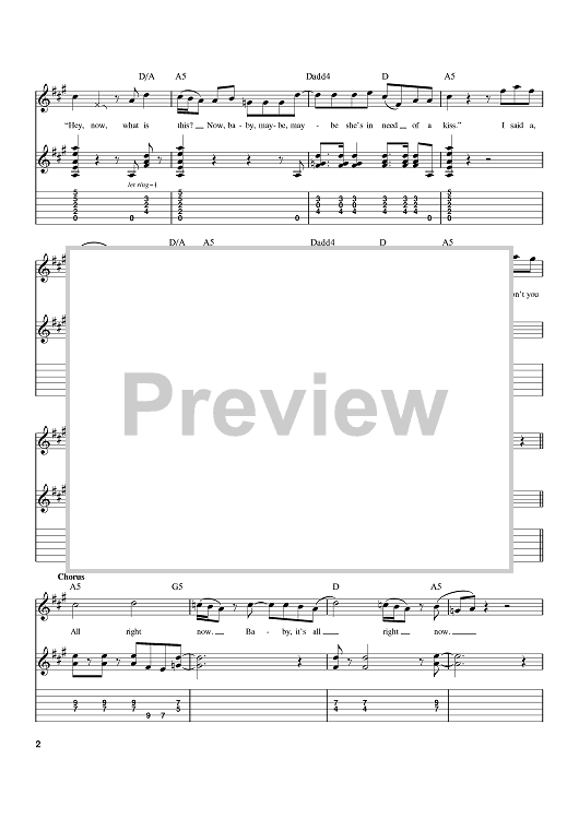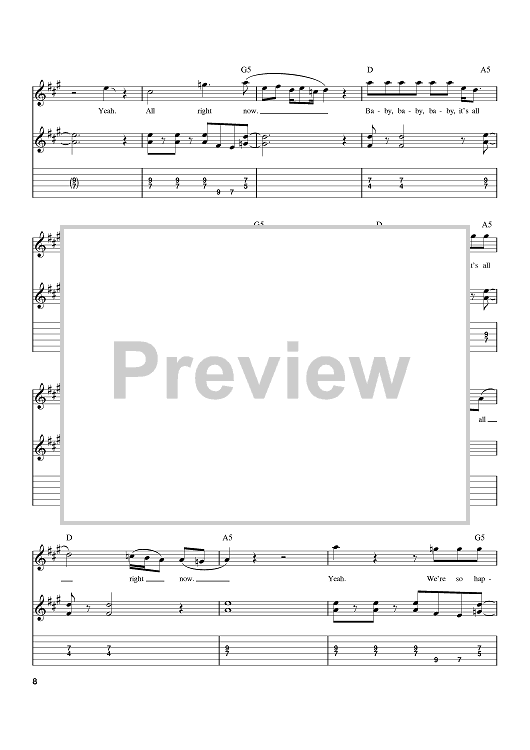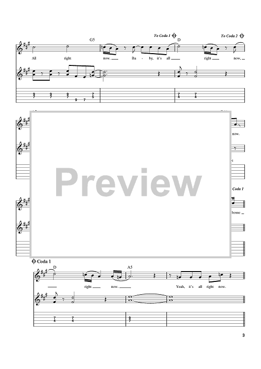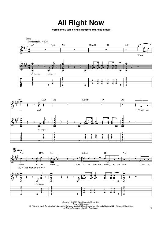 Digital Sheet Music for All Right Now by Free, Rod Stewart, Paul Rodgers, Andy Fraser scored for Guitar Tab; id:386666