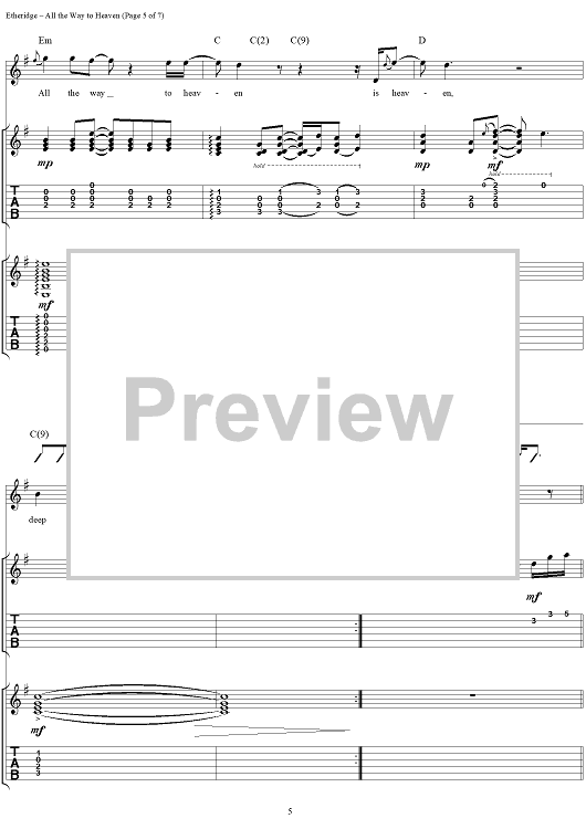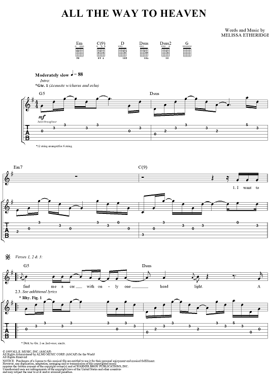 "All the Way to Heaven" Sheet Music by Melissa Etheridge