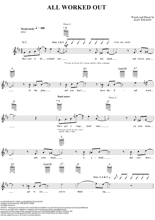 Digital Sheet Music for All Worked Out by Semisonic, Dan Wilson scored for Guitar Tab/Vocal; id:241699
