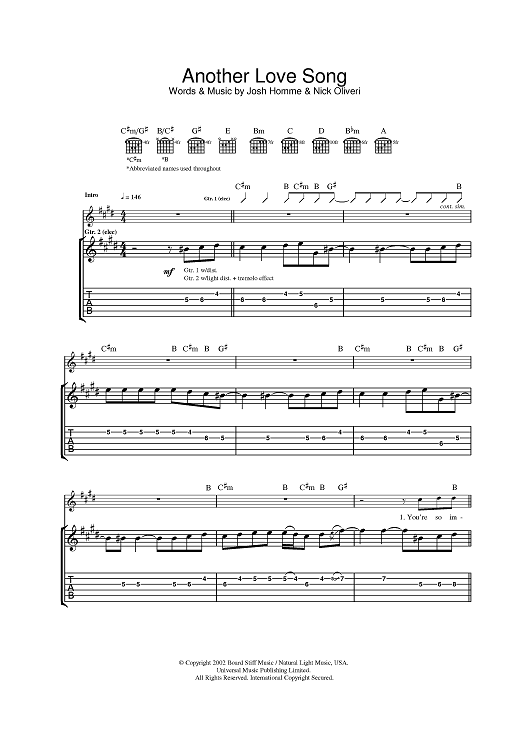 Digital Sheet Music for Another Love Song by Josh Homme, Nick Oliveri, Queens of the Stone Age scored for Guitar Tab; id:383955