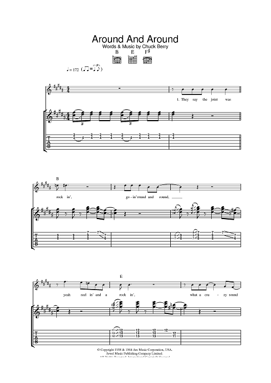 Digital Sheet Music for Around And Around by Chuck Berry scored for Guitar Tab; id:390722
