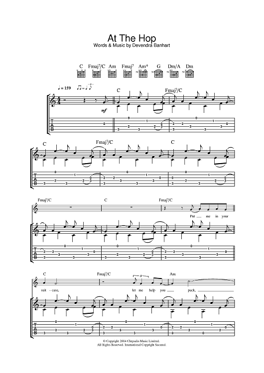 Digital Sheet Music for At The Hop by Devendra Banhart scored for Guitar Tab; id:385616