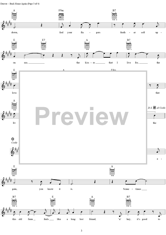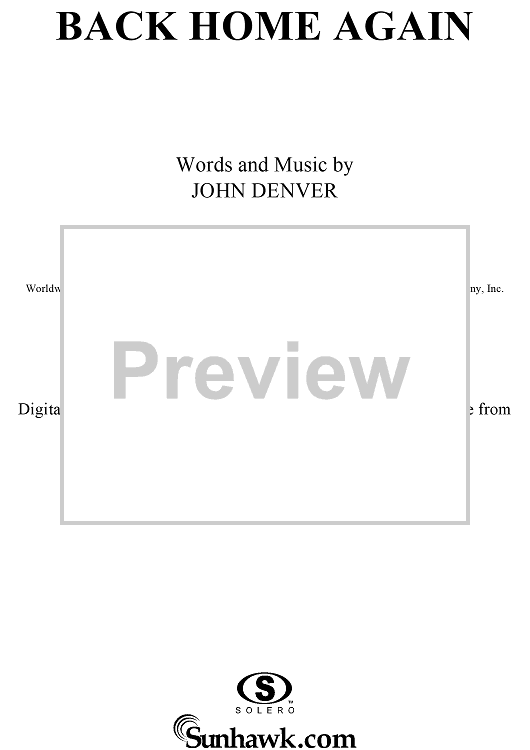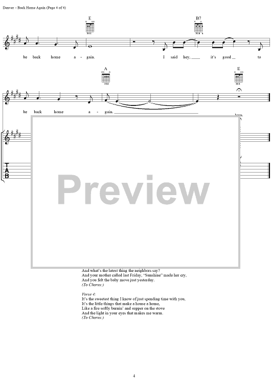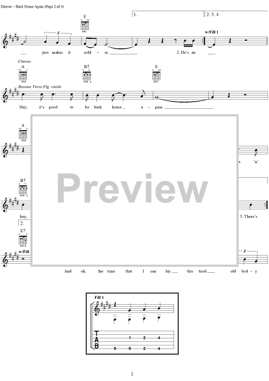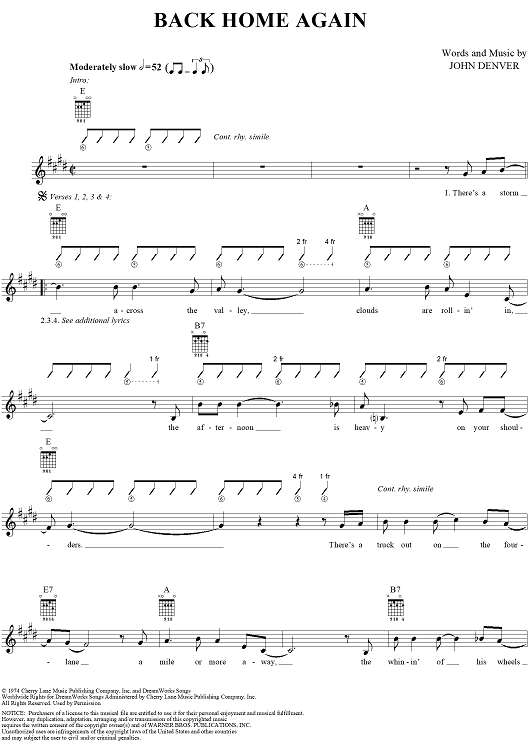 Digital Sheet Music for Back Home Again by John Denver scored for Guitar Tab/Vocal; id:287725